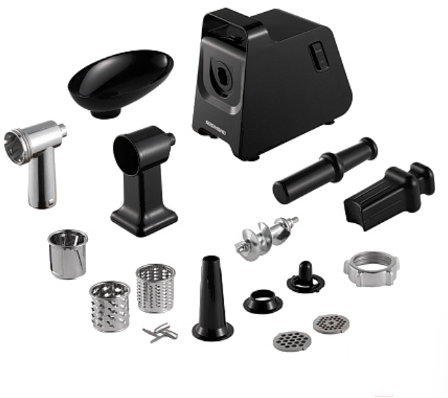 • Насадки диск/решетка для фарша (4,8 мм/7 мм), для «кеббе», для домашней колбасы, для шинковки (3 шт.)