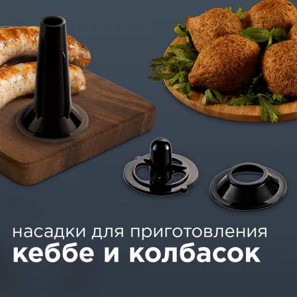 • Насадки диск/решетка для фарша (2 шт.), для «кеббе», для домашней колбасы, терка (2 шт.), для шинковки