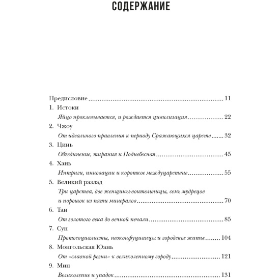 Китай на протяжении тысячелетий влиял на военные стратегии, торговые отношения, эстетику, философию и кулинарные традиции различных стран по всему миру, при этом китайская история противоречива, как ни одна другая. И при всей противоречивости ей свойственны определенные закономерности, знание которых позволяет составить целостное впечатление о Китае с его безграничным человеческим, культурным и экономическим потенциалом. Желая поделиться своими глубокими знаниями о прошлом и настоящем Китая и своей любовью к этой стране с заинтересованным читателем, Линда Джейвин мастерски собирает замысловатые пазлы китайской истории, иллюстрируя рассказ рисунками, фотографиями, схемами и картами. Автор делает важные обобщения и дает прогнозы относительно того, что ждет Китай в обозримом будущем и как это может отразиться на судьбе всей планеты. «Столкнувшись с необходимостью выбирать между ключевыми фигурами, экономическими и социальными процессами, военной историей, эстетическими и интеллектуальными течениями, я выбираю... всё. Я выделяю темы, события и личностей, которые, как мне кажется, проливают свет на суть своего времени, на развитие китайской цивилизации и государственности. Я не упоминаю всех многочисленных императоров, мятежников, мыслителей, художников, чудаков, изобретателей, политиков и поэтов. Я познакомлю вас с некоторыми из самых интересных и влиятельных людей и, насколько это возможно в такой небольшой книге, позволю им самим рассказать о себе. Я приведу цитаты из работ древних историков, современных политиков, поэтов и сатириков. Китай очень многообразен, и это сложное многообразие — часть его величия». (Линда Джейвин)