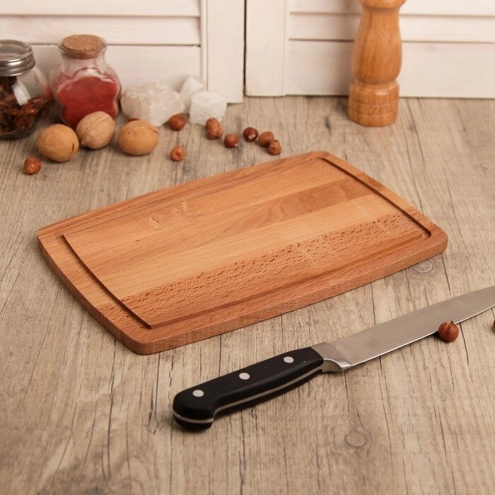 Доска разделочная малая с кровостоком 300х200 мм, бук 12мм, массив