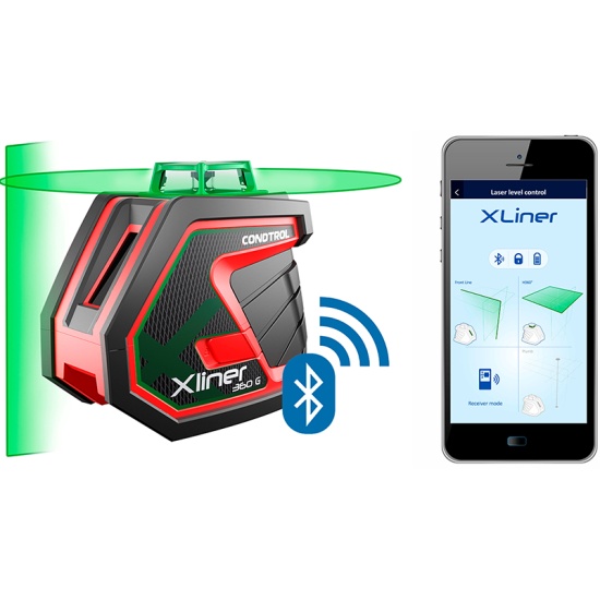 Уровень лазерный CONDTROL XLiner 360 GCONDTROL XLiner 360G – лазерный нивелир нового поколения с горизонтальной развёрткой 360°. Возможность проецировать вертикаль, горизонталь, крест и наклон позволяет решать широкий спектр задач: установка перегородок, поклейка обоев, укладка плитки и т. д. Яркость зелёного луча воспринимается в 4 раза лучше, по сравнению с красным, что повышает эффективность использования нивелира при солнечном свете.Управление с помощью приложения. Лазерный нивелир XLiner 360G оснащен модулем Bluetooth. Переключение плоскостей, контроль за интенсивностью излучения осуществляется с помощью установленного на смартфон или планшет бесплатного приложения Xliner Remote. Благодаря этой уникальной инновационной функции вы сможете управлять прибором дистанционно, не покидая рабочее место. Скачать ПО можно в магазинах приложений Google Play и App Store.Зелёный лазер. XLiner 360G оснащен зелёным лазером с длиной волны 520 нм, который воспринимается в 4 раза ярче красного при одинаковой мощности излучателя. Эта особенность позволяет использовать нивелир одинаково эффективно в помещениях и на открытых строительных площадках.Импульсный режим. Для работы на улице XLiner 360G имеет импульсный режим, позволяющий работать с приёмником лазерного излучения CONDTROL на дистанциях до 100 м.Высокая степень защиты. Ударопрочный прорезиненный корпус, надёжная защита от влаги, пыли и грязи позволяют использовать XLiner 360G не только в помещениях, но и на открытых строительных площадках в любое время года.Два вида резьбы. Благодаря двум видам резьбы (1/4’’ и 5/8’’) XLiner 360G можно устанавливать на все виды штативов, а также на аксессуары, предназначенные для крепления нивелиров.Режим наклона. При включении режима наклона отключается функция самовыравнивания, что позволяет проецировать линию под любым заданным пользователем углом. Данная особенность незаменима при разметке и установке лестничных маршей, угловых элементов конструкции или декора. Если направить нивелир излучателем вниз, можно спроецировать опорные оси для укладки напольных покрытий, в том числе плитки.● проецирует вертикаль, горизонталь, крест и наклон● эффективно работает на открытом пространстве за счёт увеличенной яркости зелёного луча● имеет высокую степень защиты от ударов, пыли и влагиТехнические характеристики:Рабочий диапазон / с детектором: 50 м / 100 мТочность самовыравнивания: ±0,2 мм/мДиапазон самовыравнивания: ± 3,5°Уровень пыле- и влагозащиты: IP54Тип резьбы для установки на штатив: 1/4’’, 5/8’Тип лазера: Класс II 520 нм < 1 мВтЭлементы питания: 4х1.5В щелочные LR6 (AA)Температура эксплуатации: -10°C ... +50°CТемпература хранения: -20°C ... +70°CГабаритные размеры: 132x85x116 ммВес: 0,44 кг