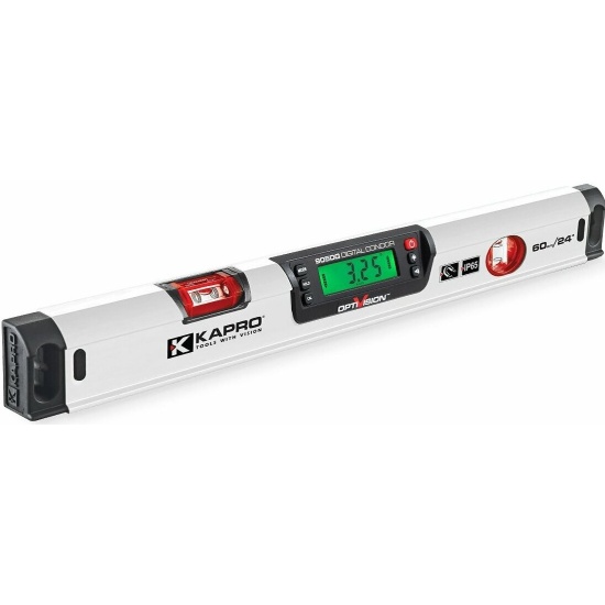 Электронный уровень KAPRO 905D + 842 (уровень лазерный)Описание905D цифровой уровень OPTIVISION 60смОбласть применения: Плотничное дело, строительство, кровля, измерение уклонов, лестниц и планировок пандусов.-Степень защиты IP65: пыле- и водонепроницаемость-Две акриловые противоударные колбы(вертикаль, горизонталь).-Красный цвет границ пузырька колб лучше воспринимается глазом при плохо освещенных условиях работ.-Наклонная горизонтальная колба Optivision с градиентными линиями до 2% (помогает в выставлении уклона труб)-Цифровая точность:0,05° по уровню и отвесу-Наклонный ЖК- дисплей с подсветкой–читается при перевернутом положении-Функция удержания и режима (степень/процент/шаг)Зуммер при 0°, 45° и 90°Функция повторной калибровки и “Ложный ноль”-Мощные магниты-Настенный захват (выступы "антискольжение")-Большие силиконовые кнопки-Амортизирующие резиновые торцевые крышки торцевые заглушки (защита от ударов торцов и деформации изделия)-Индикатор заряда батареи-Фрезерованная поверхностьЛимитированная серия с подарочным лазерным уровнем 842 Bambino ( цена только за цифровой уровень, лазер- реальный подарок)Пересечение вертикальной и горизонтальной линий – лазерный крестДальность лазера 15 мТочность ±0,4 мм/мРезьба для треноги 1/4"Диапазон самовыравнивания ±3°Ручной режим
