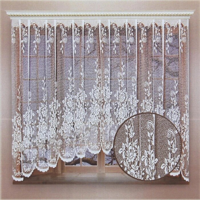 Штора кухонная 255х165 см, белый, 100% п/э, шторная лента