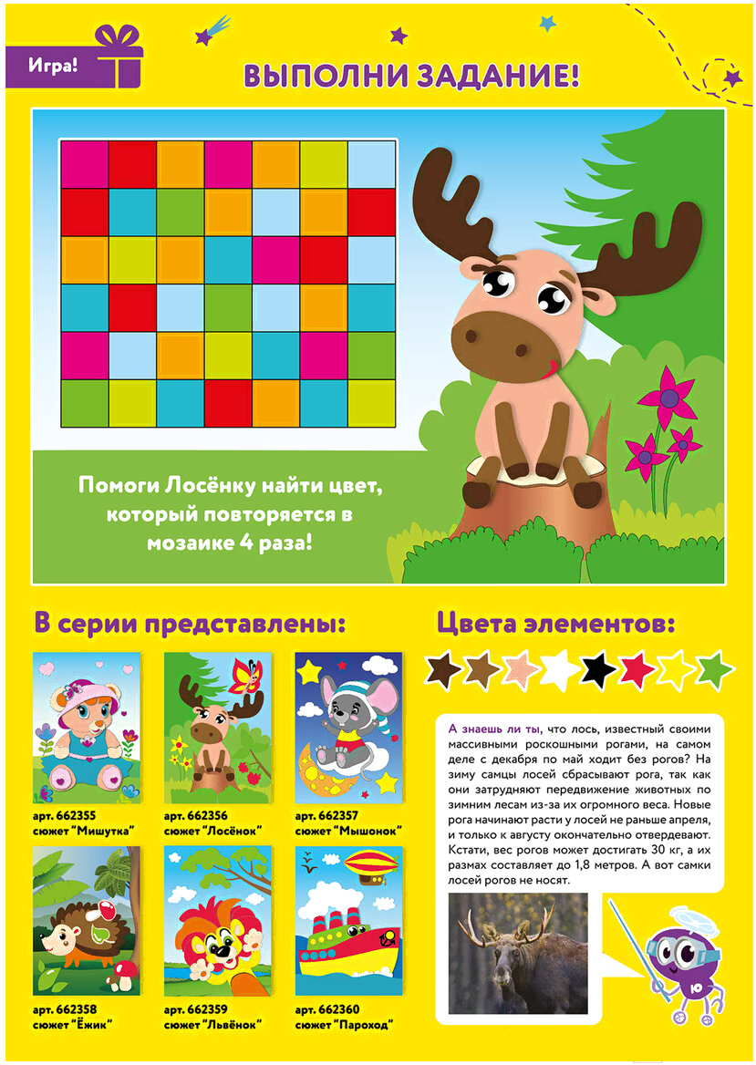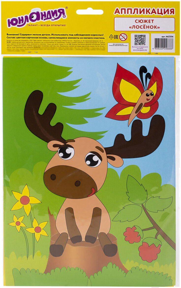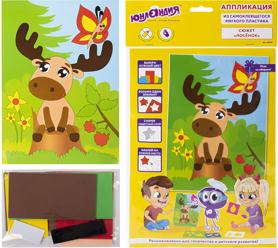 Набор для творчества Юнландия Аппликация из мягкого пластика Eva. Лосенок / 662356