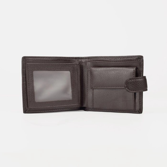 Портмоне мужское, 2 отдела на клапане, цвет коричневый