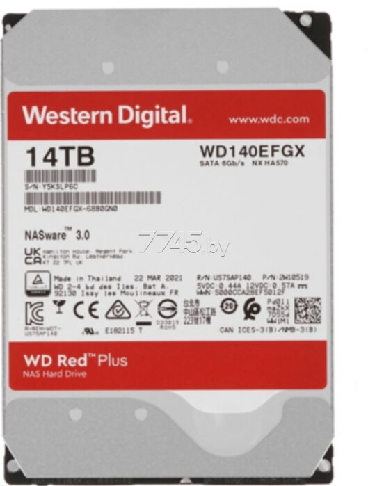 Жесткий диск HDD WESTERN DIGITAL Red Plus 14TB (WD140EFGX) – это жесткий диск, который предназначен для работы в системах NAS предприятий малого и среднего бизнеса, а также для использования в домашних офисах. Он идеально подходят для архивирования данных и предоставления общего доступа к ним, а также модернизации массива RAID в системах, использующих ZFS и другие файловые системы. Созданные и протестированные для использования в системах NAS с 8 отсеками, эти накопители обеспечивают универсальность и гибкость. Вы можете не сомневаться в надежности хранения на них важных персональных и рабочих файлов, а также предоставления доступа к ним. Потоковая передача данных, резервное копирование, общий доступ и систематизация цифровых материалов с помощью сетевого устройства хранения и дисков WD Red Plus, которые дают возможность без всяких усилий передавать материалы на любые устройства у вас дома или в офисе. Технология NASware 3.0 улучшает совместимость дисков существующей сетью и устройствами. Компаниям большего размера, в системах хранения которых до 24 отсеков, мы рекомендуем использовать накопители WD Red Pro с исключительным быстродействием. Далеко не всякий диск справится. Увеличьте емкость системы с 8 отсеками до 112 ТБ, а с помощью уникальной технологии Western Digital NASware 3.0 вы можете оптимизировать каждый накопитель. Современная технология NASware 3.0, реализованная в каждом жестком диске WD Red Plus, повышает производительность системы благодаря улучшению параметров совместимости, надежности, интеграции и обновления. Эти накопители предназначены для сетевых систем хранения, а наш уникальный алгоритм помогает добиться оптимального соотношения производительности и надежности при использовании дисков в сетевых устройствах хранения и массивах RAID. Другими словами, WD Red Plus — это один из тех дисков, которые совместимы с максимальным количеством сетевых устройств хранения. Но вы не обязаны просто верить нам на слово. Жесткие диски WD Red Plus проверены на совместимость с большим количеством технологий и сетевых устройств хранения, производимых нашими партнерами.