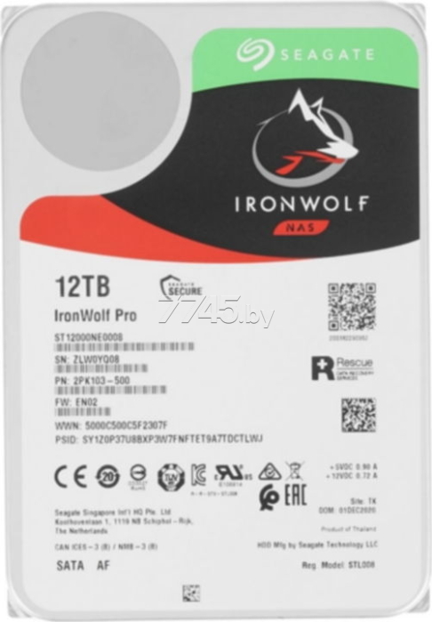 Жесткий диск HDD SEAGATE Ironwolf Pro 12TB (ST12000NE0008) - накопители IronWolf Pro созданы для сетевых хранилищ и рассчитаны на рабочую нагрузку до 300 ТБ в год. Они обеспечивают масштабируемость и круглосуточную работу в многодисковых средах NAS для предприятий малого бизнеса и специалистов творческих профессий.