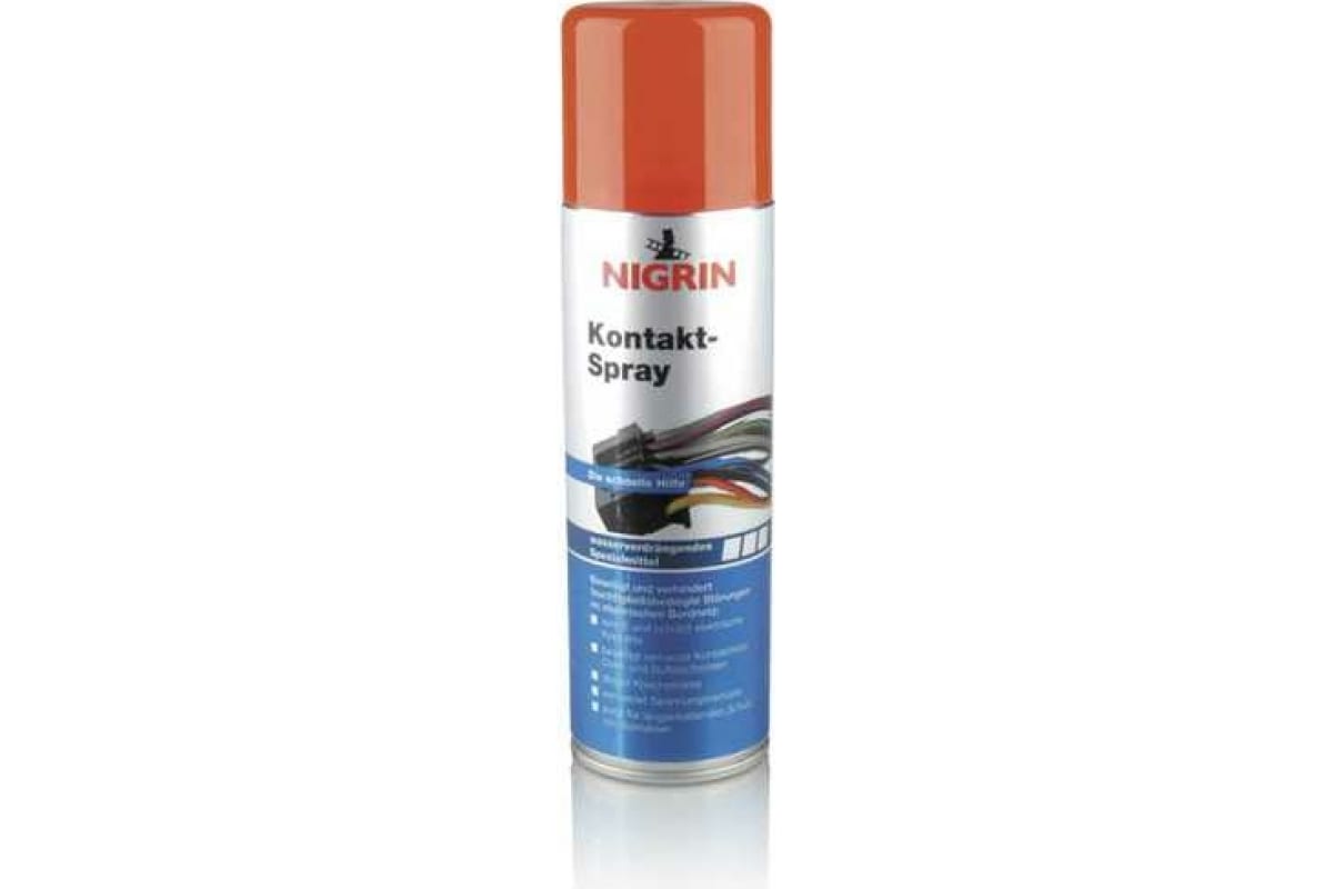 Спрей для контактов NIGRIN 250 мл 74031 устраняет влагу и препятствует ее попаданию на электрическую бортовую сеть транспортного средства.