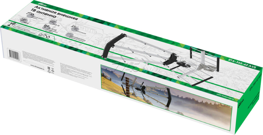 ТВ-антенна RITMIX RTA-355-42 AVS – уличная активная антенна, которая предназначена для приема эфирного ТВ сигнала на расстоянии от 10 до 80 км от ближайшей телевышки. Корпус и 42 принимающих элемента антенны изготовлены из алюминия, усилитель сигнала расположен в защитном боксе из прочного пластика. При уличном размещении антенне не страшна влага, снег или дождь. Эффективная направленная конструкция, быстрая несложная сборка, надежное крепление позволяют самостоятельно собрать и установить антенну в наиболее удобном вам месте и направить ее в сторону ближайшей телевышки, максимально высоко на вашей крыше на мачте или кронштейне, с наилучшим приемом сигнала телевещания. Антенна обеспечивает отличный приём и аналогового, и цифрового эфирного телесигнала современных HDTV стандартов, включая DVB-T, DVB-T2, а также прием FM радиосигнала. Подведения какого-либо дополнительного кабеля питания не требует, подключается один стандартный антенный кабель. Питание, необходимое для работы усилителя сигнала, осуществляется по антенному кабелю при подключении к ТВ приставке (ресиверу). Пожалуйста, проверьте в меню вашей ТВ приставки настройку включения подачи питания для внешней антенны. Если же антенна подключена напрямую в телевизор без ТВ приставки, она будет работать как пассивная, принимая эфирный сигнал вещания и передавая его на ваш телевизор, но не усиливая сигнал.