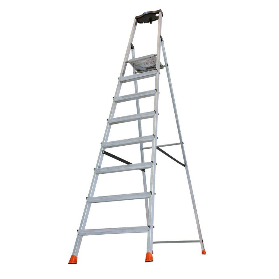 Стремянка Krause 8 ступеней 170 см алюминиевая с лотком-органайзером ступень 80 мм