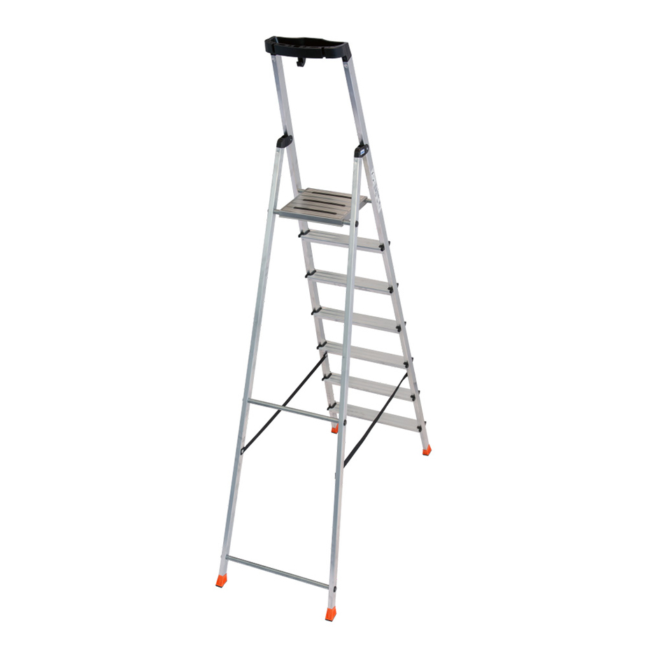 Стремянка Krause 7 ступеней 150 см алюминиевая с лотком-органайзером ступень 80 мм