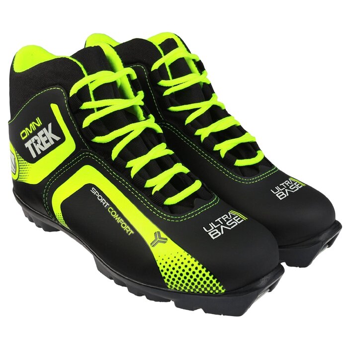 Ботинки лыжные TREK Omni 1 NNN ИК, цвет чёрный, лого лайм неон, размер 38