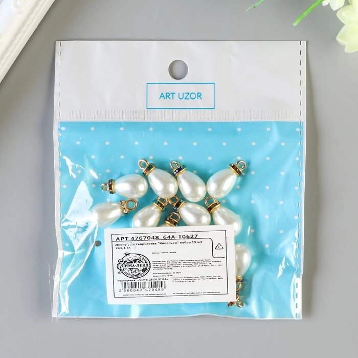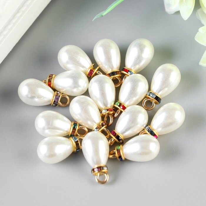 Декор для творчества металл "Капелька жемчужная" золото набор 15 шт 2х1,1 см
