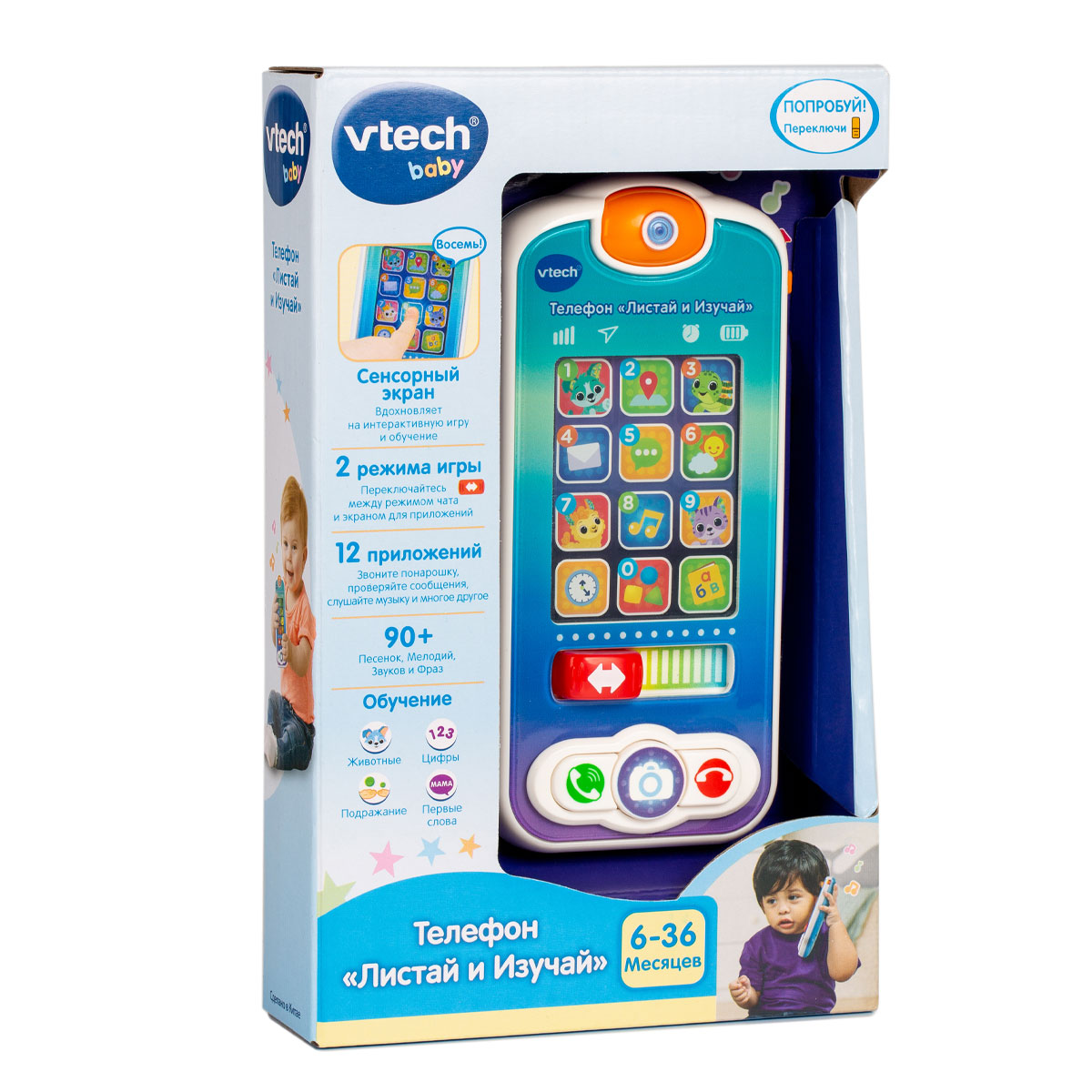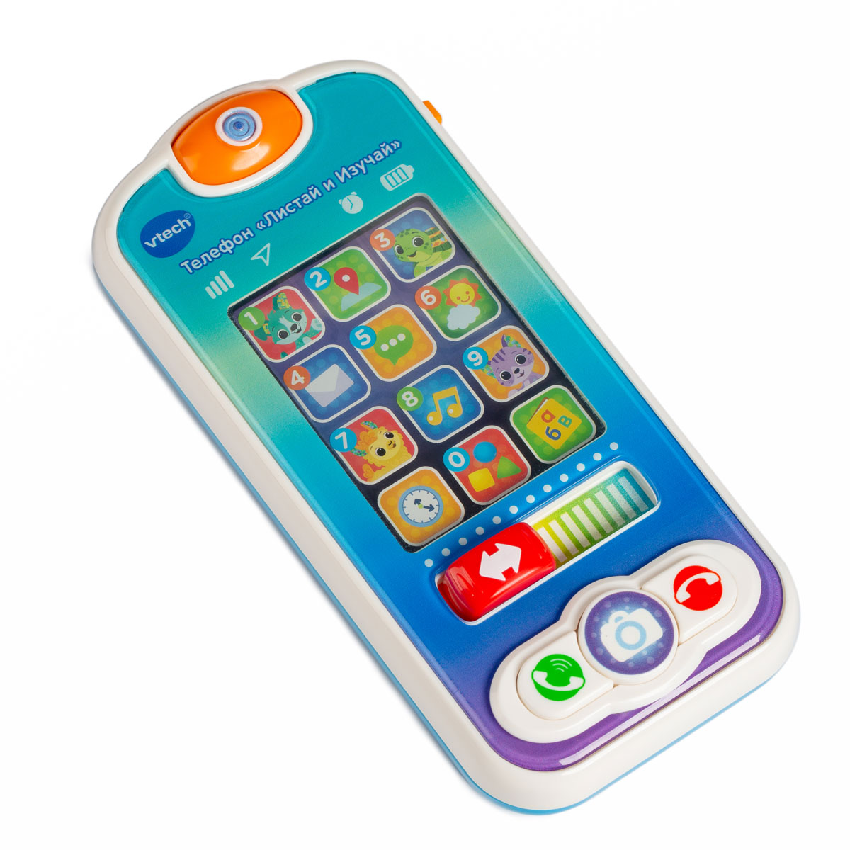Познакомить малыша с миром смартфонов поможет телефон «Листай и изучай!». С помощью иконок приложений можно понарошку сделать звонок друзьям-животным, узнать погоду и послушать музыку! 12 приложений представят ребёнку первые слова, привлекательные рисунки с подсветкой, кнопки, знакомящие с эмоциями, кнопки телефона для виртуальных фотографий.
