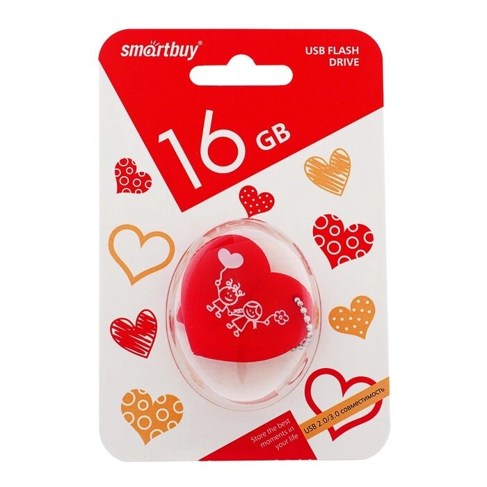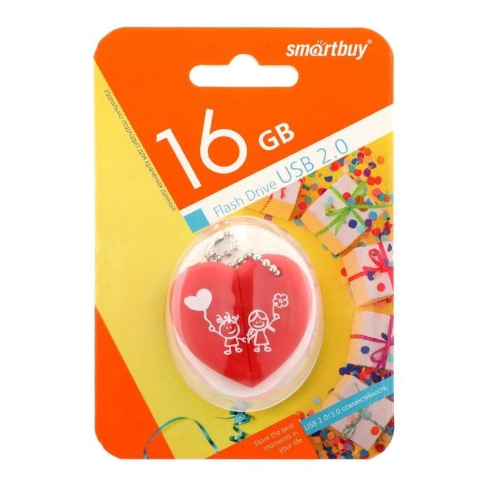 Флешка Smartbuy Wild series, 16 Гб, USB2.0, "Сердце", чт до 25 Мб/с, зап до 15 Мб/с