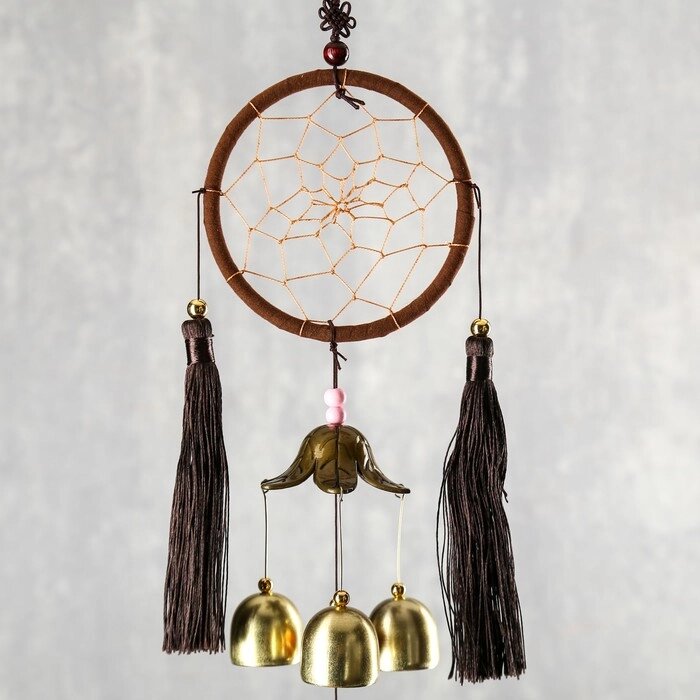 Музыка ветра с ловцом снов "Круг с кисточками" 4 колокольчика d=10 длина 40 см