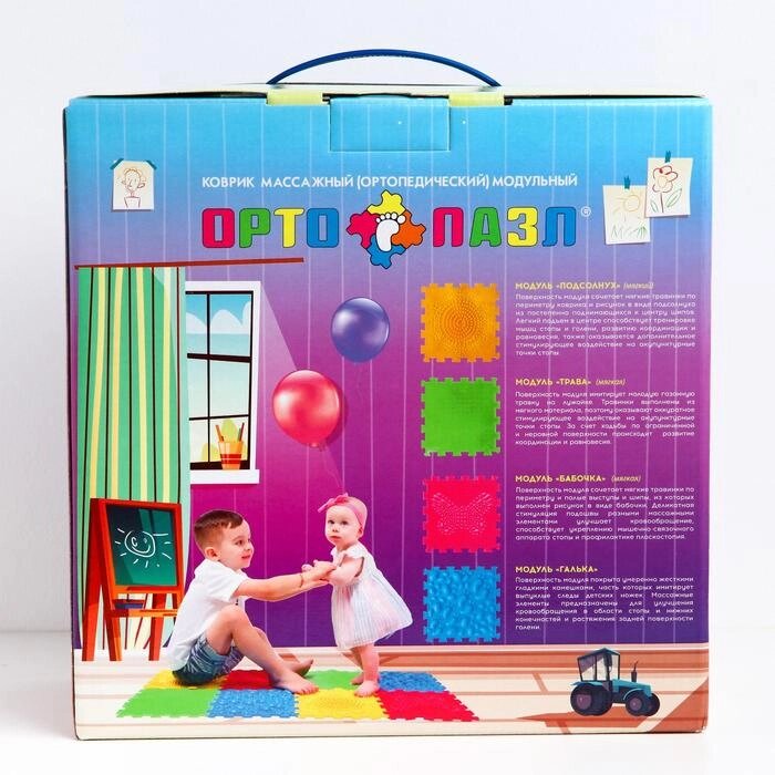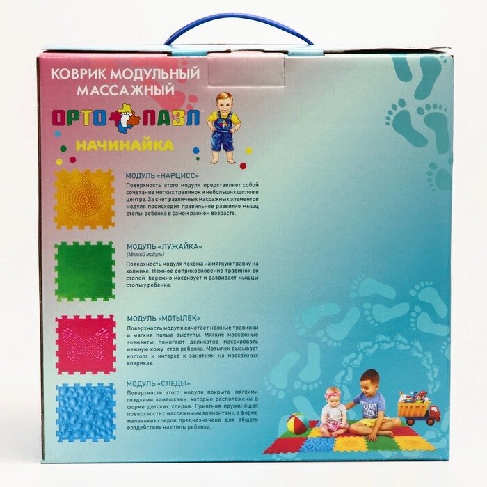 Массажный коврик - пазл, модульный ОРТО ПАЗЛ, МИКС «Начинайка», 8 модулей, 4 вида покрытия, от 12 мес.