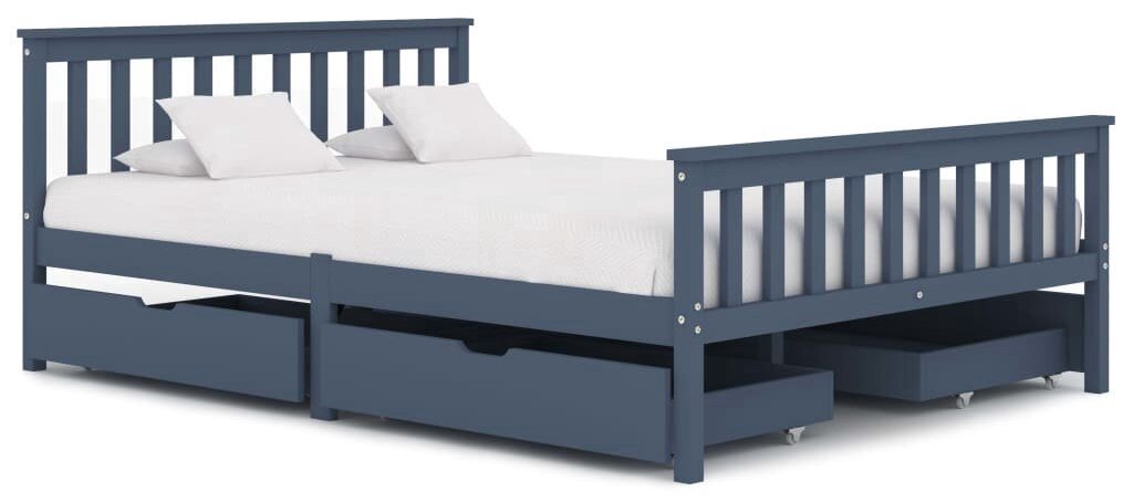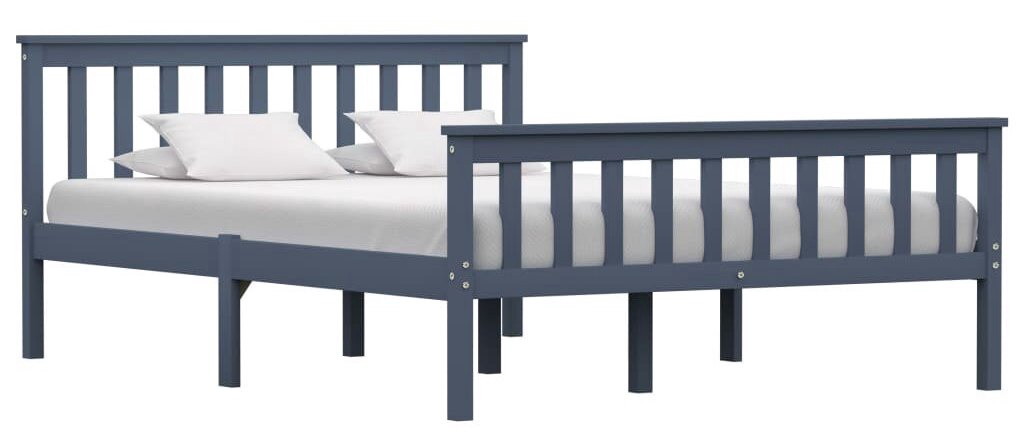 Кровать VLX Solid Pine Wood 3060708, серый, 208 x 148 см, с решеткой