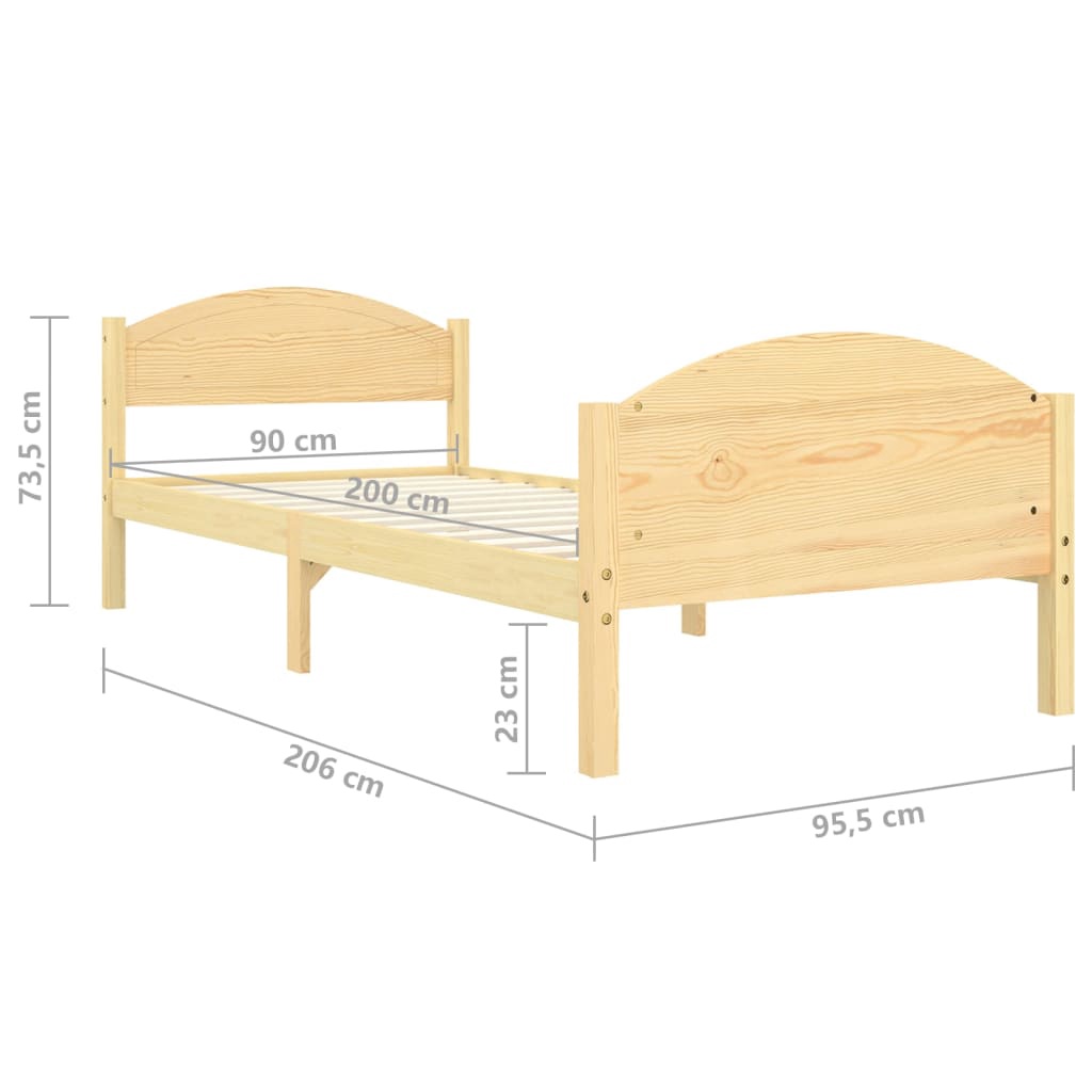 Кровать VLX Solid Pine Wood 322026, коричневый, 206 x 95.5 см, с решеткой