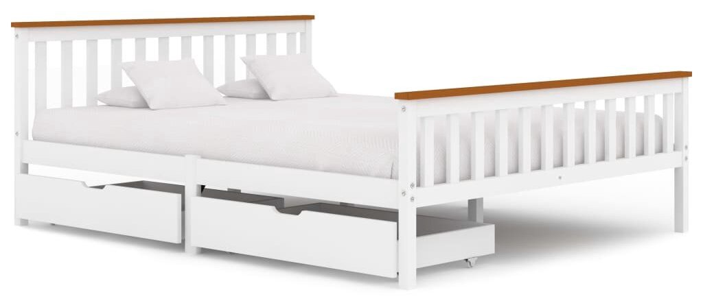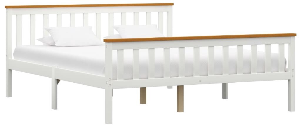 Кровать VLX Solid Pine Wood 3060436, коричневый/белый, 208 x 168 см, с решеткой