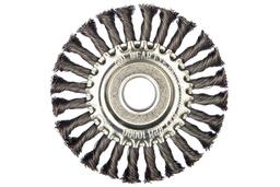 Щетка круглая витая EDGE by PATRIOT 813010011 применяется совместно с угловыми шлифовальными машинами и предназначена для снятия лака, краски, зачистки от ржавчины металлических поверхностей и изделий. Рабочая часть состоит из скрученной в пучки стальной проволоки. Специальная форма щетки в виде диска позволяет работать в труднодоступных местах.