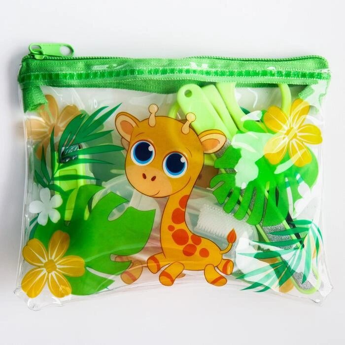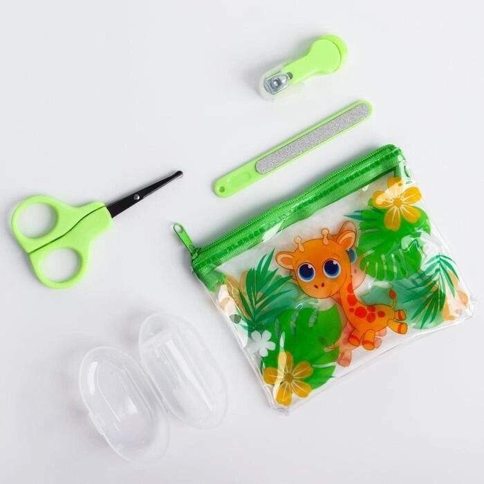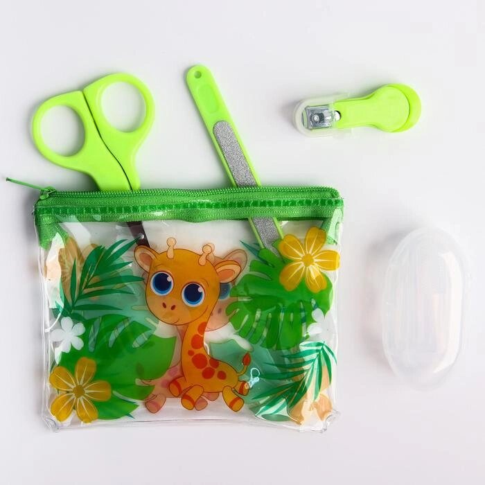 Набор маникюрный детский «Жирафик», 4 предмета: ножнички, книпсер, пилочка, щётка
