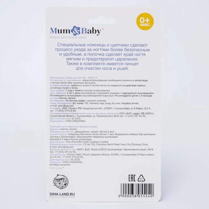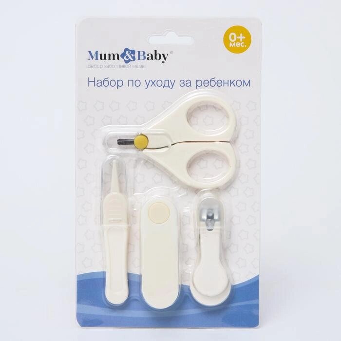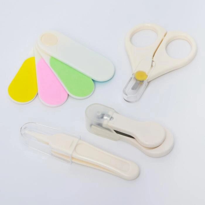Набор маникюрный детский, 4 предмета: безопасные ножницы, щипчики с ручкой, пилочка, пинцет, цвет белый