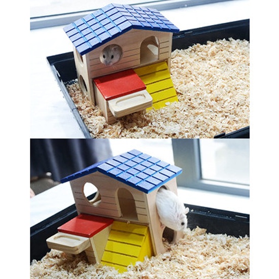 Домик для грызунов Zoowell RJ116 деревянный c лесенкой и отсеком для лакомствВ этом домике для грызунов есть несколько секретных помещений, нор и небольшая лестница, где можно спрятаться, хранить еду, лазить и играть, на первом этаже темно и удобно спать днем.Этот домик поможет удовлетворить их игровой инстинкт и поможет скрасить одиночество и скуку.Дизайн: Двухярустный дизайн и кормушка удовлетворяет их инстинктам гнездования и жевания.Материал: Все натуральное дерево безопасно для животных. Деревянный дом прочный, не растрескивающийся, нетоксичный, безопасный для вас и вашего питомца.Простота сборки: Это домик складной, чтобы сэкономить место при хранении. Будьте осторожны при складывании, чтобы не повредить вашим домашним животным, прячущимся под ним, когда будете убирать дом.Размер дома для домашних животных: 17,5 х 16 х 15 см, диаметр норки: 4 см. Вес нетто приблизительно:200 грамм. Пожалуйста, убедитесь, подходит ли по размерам вашему питомцу перед покупкой.