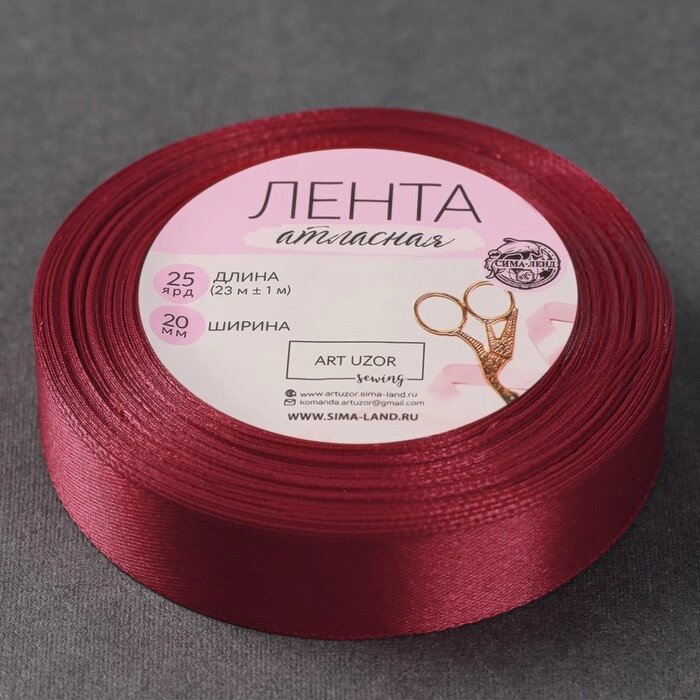 Лента атласная, 20 мм 23 1 м, цвет бордовый №48