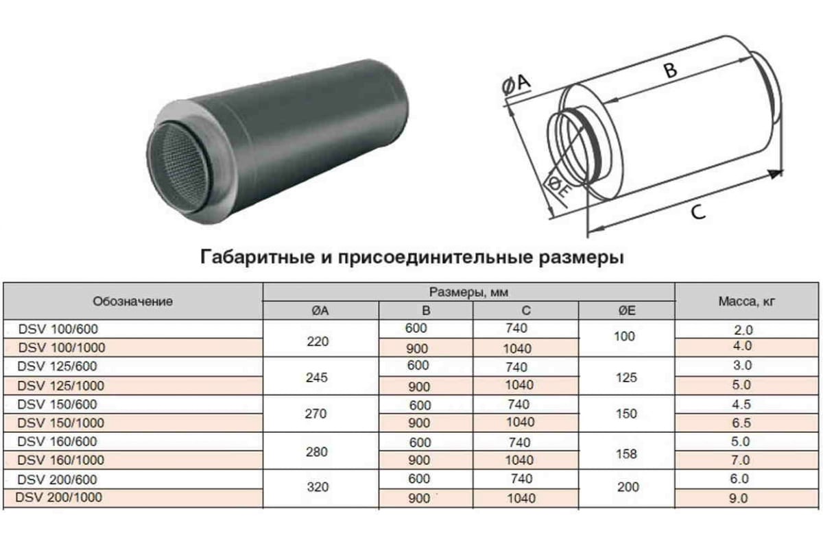 Шумоглушитель круглый DSV 200/1000 мм Diaflex УФ-00034421