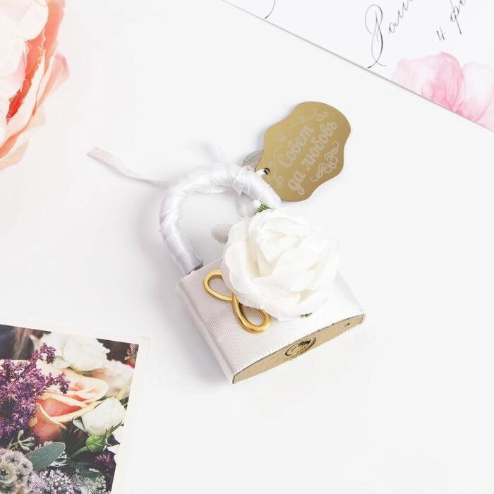 Замок свадебный «Вместе навсегда», с ключом, цвет молочный, 6,5 х 4,5 х 3,5 см
