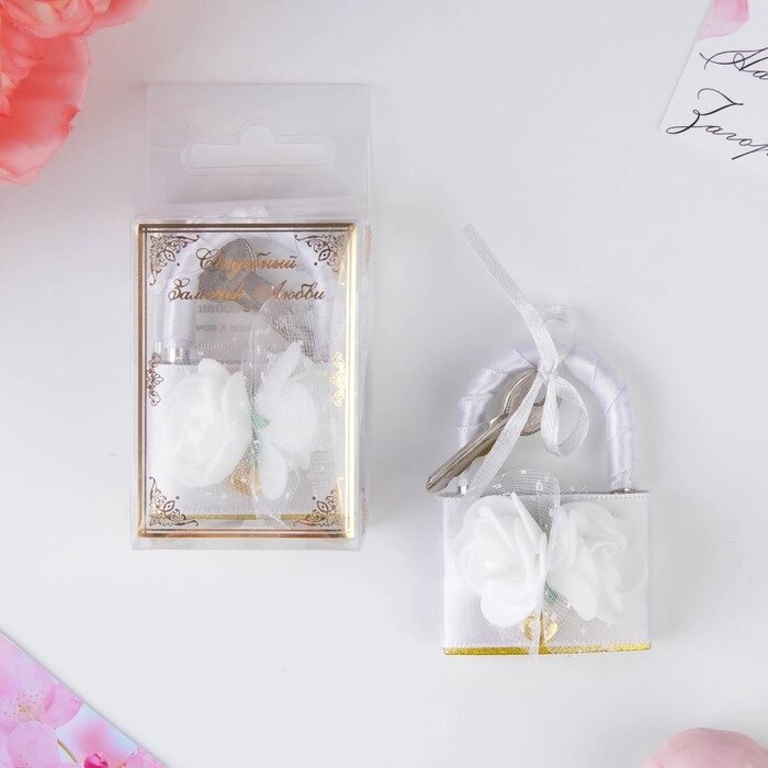 Замок свадебный "Белые розы" , 6,5 х 4,5 х 3,5 см