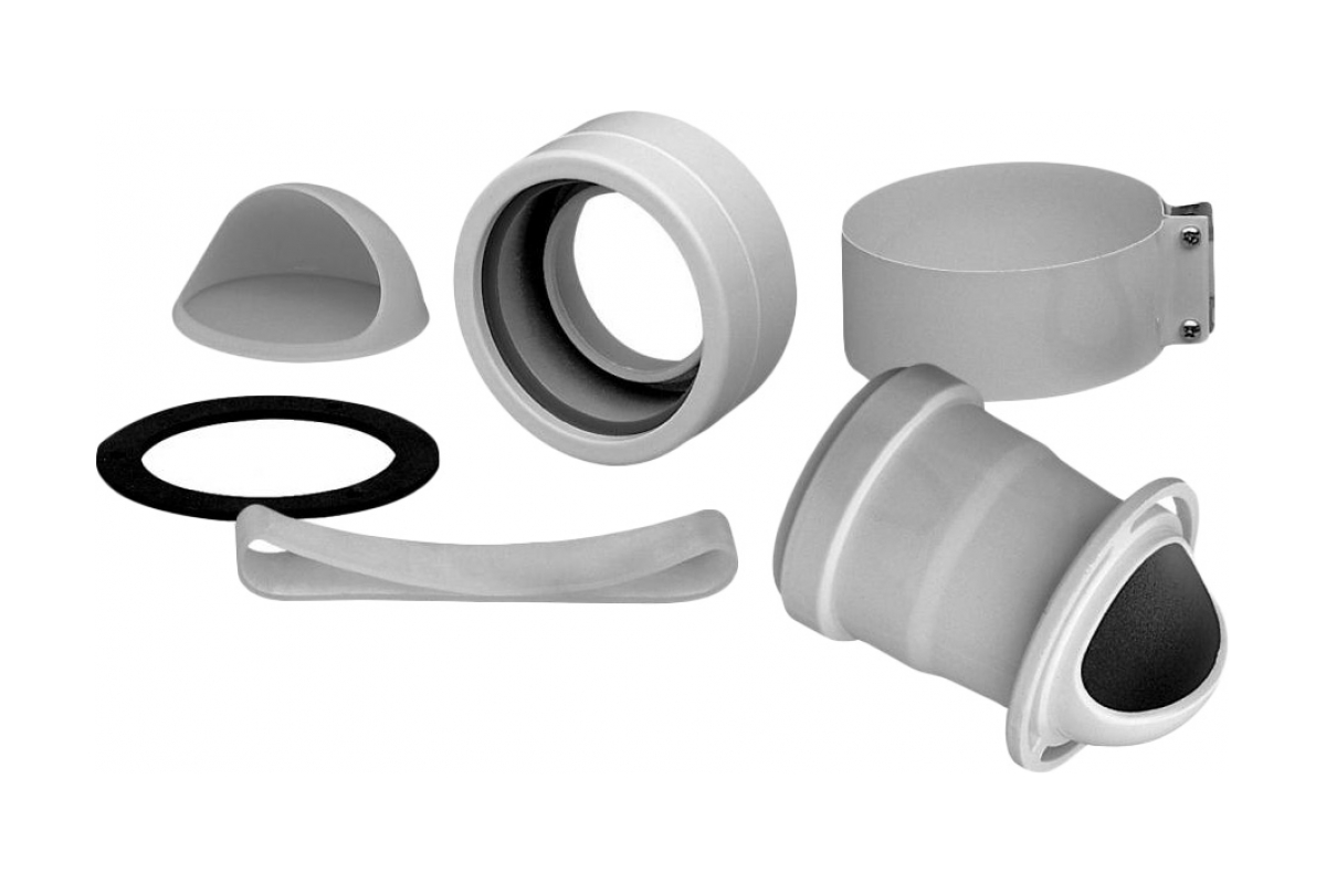 Переходной комплект на раздельные трубы Baxi AFR KHG71406151 служит для организации притока воздуха и отвода продуктов сгорания по раздельным трубам.