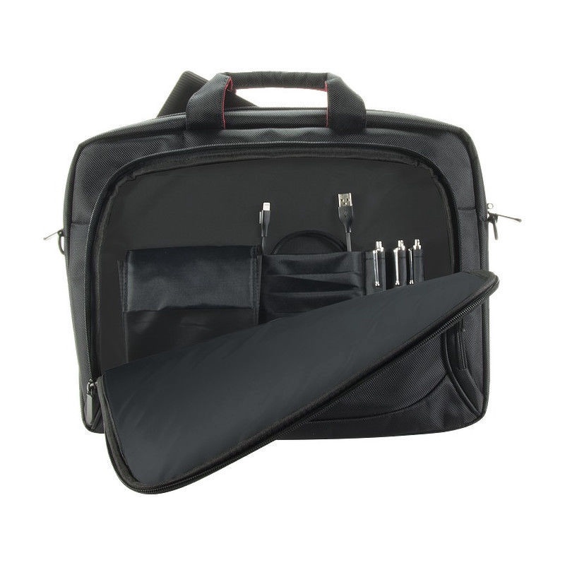 Papildoma informacijaKlasikinis nešiojamojo kompiuterio krepšys. Atskira dokumentų kišenė. Papildomos kišenės aksesuarams. Patogi rankena ir peties diržas