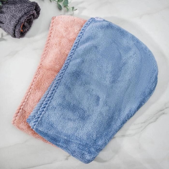 Чалма для сауны или душа с пуговкой Доляна, микрофибра, цвет МИКС
