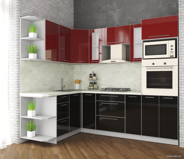 - Оттенок верхних фасадов бордо глянец