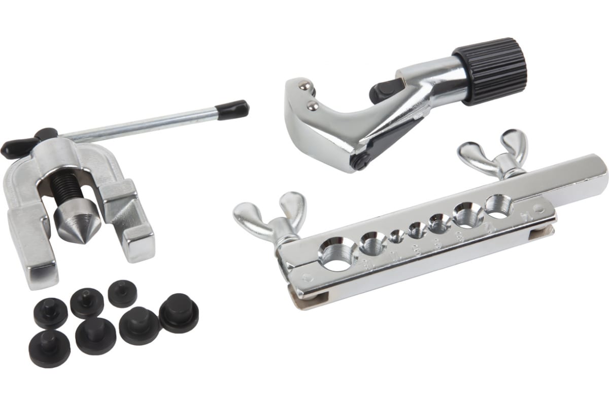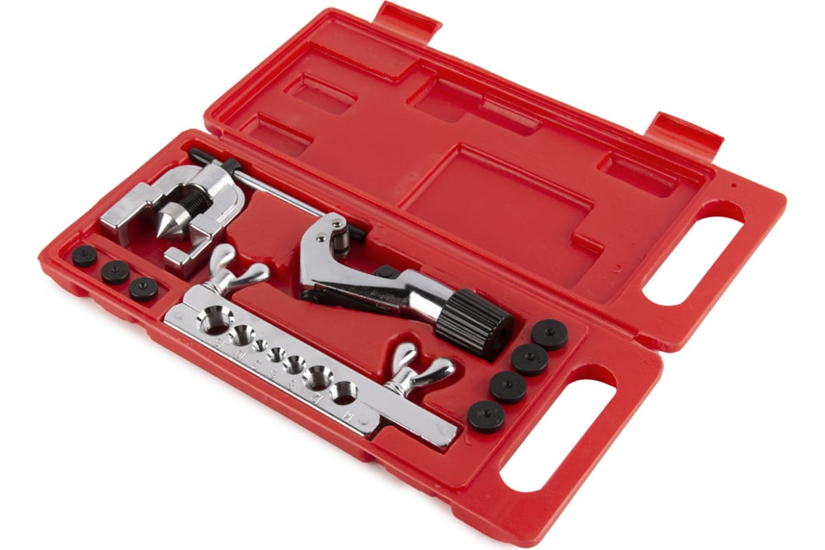 Набор для развальцовки и резки трубок WIEDERKRAFT 5, 6, 8, 10, 12, 14, 16 мм WDK-214325 используется для труб из цветных металлов. Набор позволяет нарезать, а также развальцовывать медные, алюминиевые и латунные трубки для соединения частей системы питания, тормозной системы и труб кондиционирования.