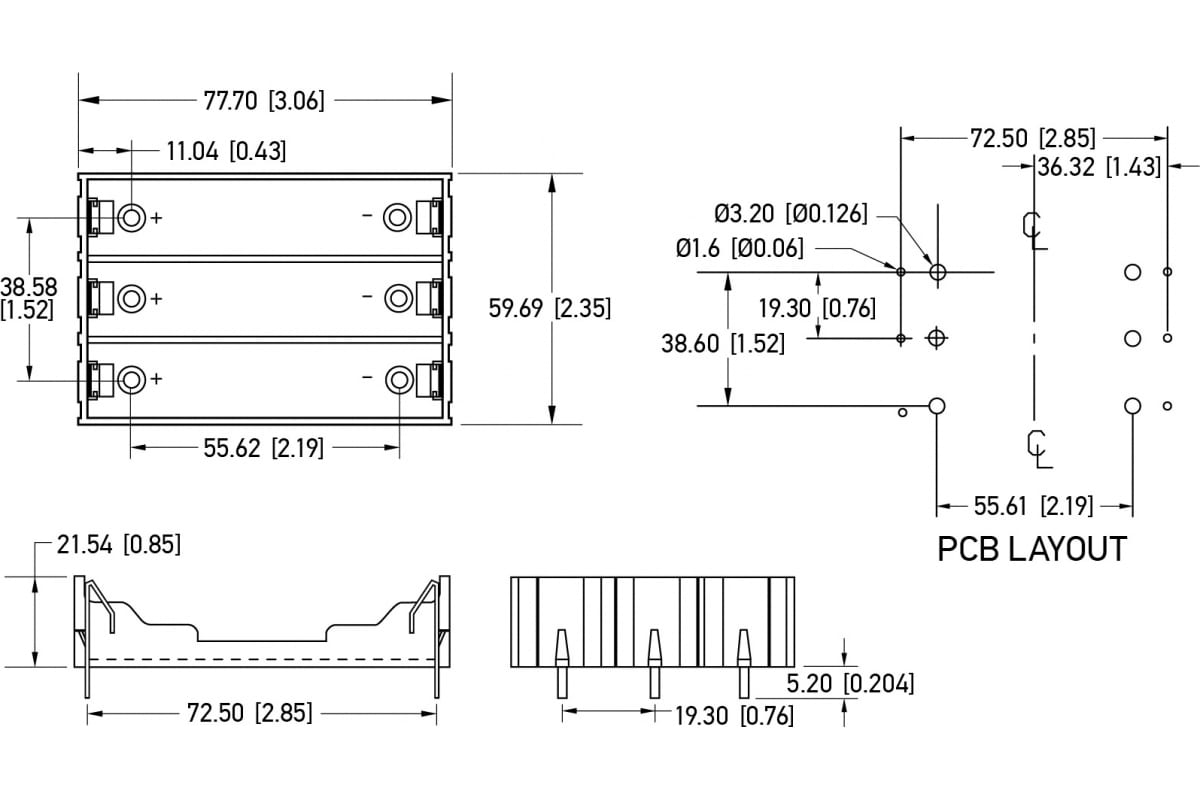 Батарейный отсек REXANT 3x18650 Li-ion на плату 16-0803-9 монтируется на печатную плату для подключения питания в низкотоковых электроприборах, игрушках, радиоуправляемых устройствах. Отсек рассчитан на Li-ion типоразмера 18650. Контакты из меди с защитным покрытием. Диапазон температур -40...+105 °C.
