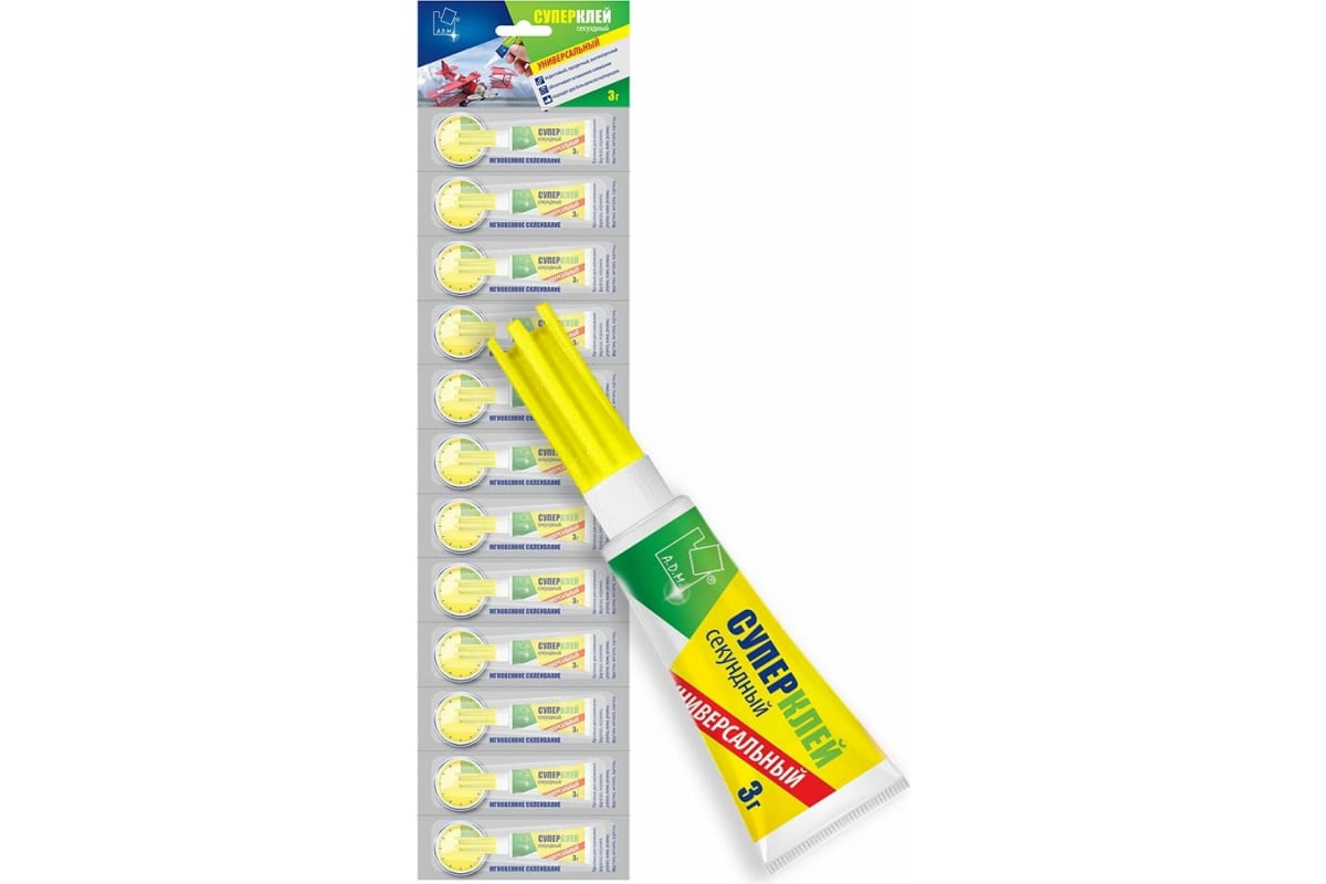 Супер-клей универсальный Милен 12 шт, 3 гр (10244) 121740 используется для мгновенного соединения самых разных материалов, он отличается своей улучшенной формулой, которая обеспечивает безупречный результат от применения. Он отлично подойдет для работы с непористыми и гладкими поверхностями.