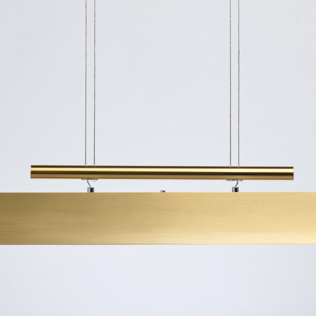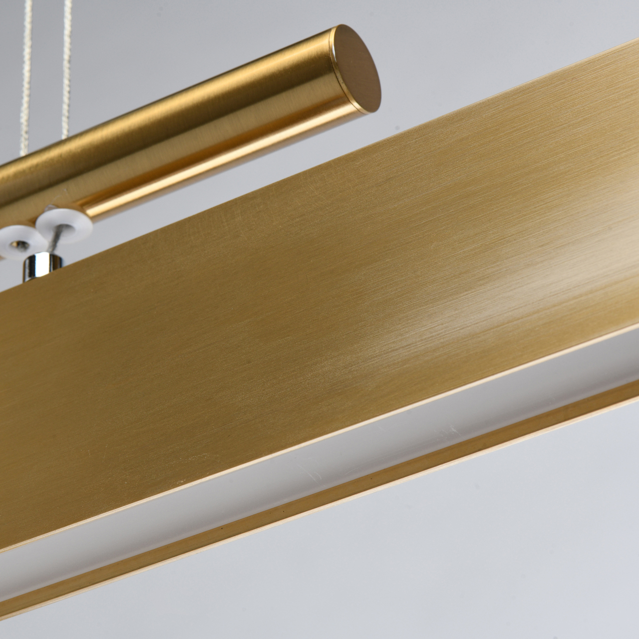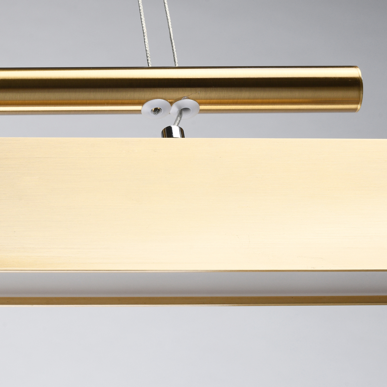 Преимущества моделиСовременный минималистичный дизайн светильника из облегченного сплава алюминия.Специальная разработка для освещения столовых обеденных зон и рабочих островов с длиной световой поверхности 1,5 и 1,2 м.Регулировка высоты подвеса до 2,1 м с помощью ручного лифта.Мощные светодиоды обеспечивают большую площадь освещения, долговечны и экономичны.Плавное диммирование при удержании кнопки ВКЛ позволяет приглушать свет. Есть функция памяти настроек освещения.Светодиодные источники света безопасно оставлять включенными на ночь в режиме ночной подсветки.Выключатель на корпусе управляет одновременным включением верхнего и нижнего света.