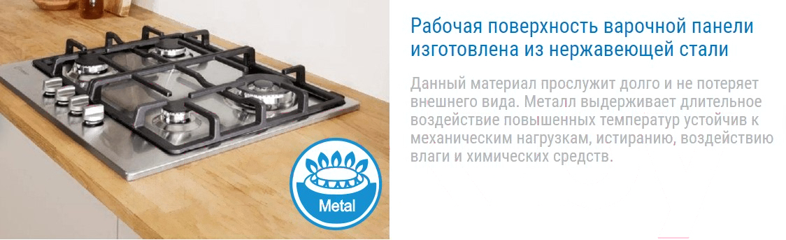 • Тип конфорок/зон нагрева газовые стандартные (4 шт.)