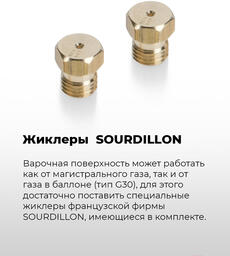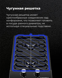 • Тип конфорок/зон нагрева газовые стандартные (1 шт.), газовые «Двойная корона» (1 шт.)