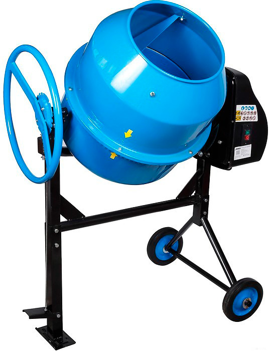 Мощность 930 Вт, напряжение питания: 220±10 В, объем барабана 180 л, объем готовой смеси 150 л, вес 48 кг.