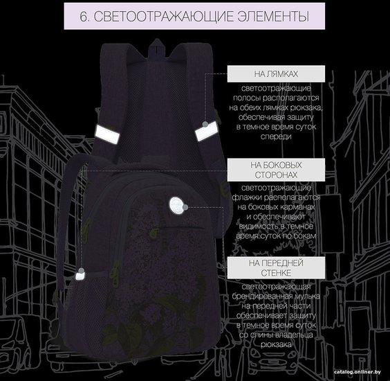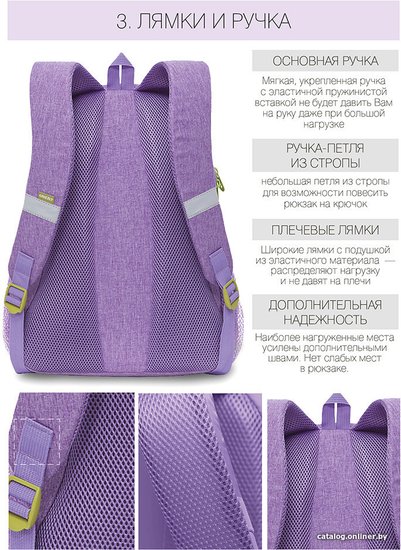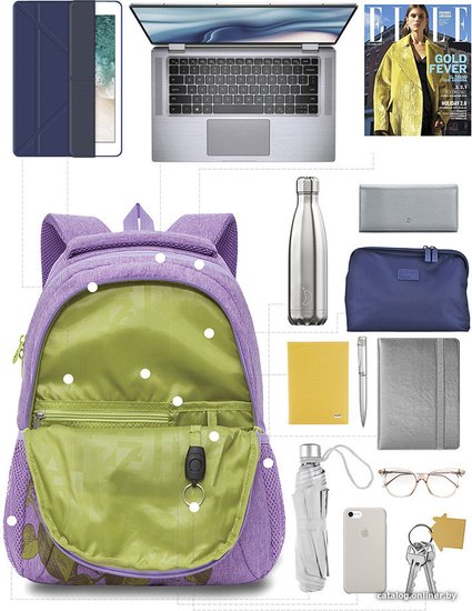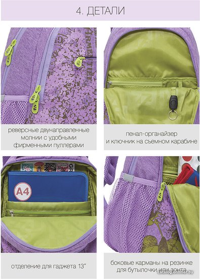• Мы знаем, что в молодежных женских рюкзаках GRIZZLY для повседневного использования вы цените вместительность, легкость и практичность.В женском рюкзаке два основных отделения: большое для крупных вещей и поменьше для принадлежностей. Внутри 5 карманов, включая карман для ноутбука 13”, пенал и брелок для ключей. Снаружи карман быстрого доступа для кошелька и документов. Боковые кармашки для воды. Все что вам нужно лежит на своих местах. При этом вес чуть больше 500 г.Чтобы разгрузить позвоночник, мы сделали анатомическую спинку с накладками. Она снижает нагрузку и сохраняет вашу осанку.Материал повседневного рюкзака — плотный полиэстер, который хорошо держит форму. На лицевой части ряда моделей нежный принт в пастельных тонах. За счет водо- грязеотталкивающей пропитки он меньше пачкается и долго остается как новый. Мы так подобрали цвета, чтобы они сочетались с любой повседневной одеждой.Добавляйте молодежный рюкзак в корзину и пользуйтесь с удовольствием.С уважением, команда GRIZZLY. Мы знаем, что в молодежных женских рюкзаках GRIZZLY для повседневного использования вы цените вместительность, легкость и практичность.В женском рюкзаке два основных отделения: большое для крупных вещей и поменьше для принадлежностей. Внутри 5 карманов, включая карман для ноутбука 13”, пенал и брелок для ключей. Снаружи карман быстрого доступа для кошелька и документов. Боковые кармашки для воды. Все что вам нужно лежит на своих местах. При этом вес чуть больше 500 г.Чтобы разгрузить позвоночник, мы сделали анатомическую спинку с накладками. Она снижает нагрузку и сохраняет вашу осанку.Материал повседневного рюкзака — плотный полиэстер, который хорошо держит форму. На лицевой части ряда моделей нежный принт в пастельных тонах. За счет водо- грязеотталкивающей пропитки он меньше пачкается и долго остается как новый. Мы так подобрали цвета, чтобы они сочетались с любой повседневной одеждой.Добавляйте молодежный рюкзак в корзину и пользуйтесь с удовольствием.С уважением, команда GRIZZLY.