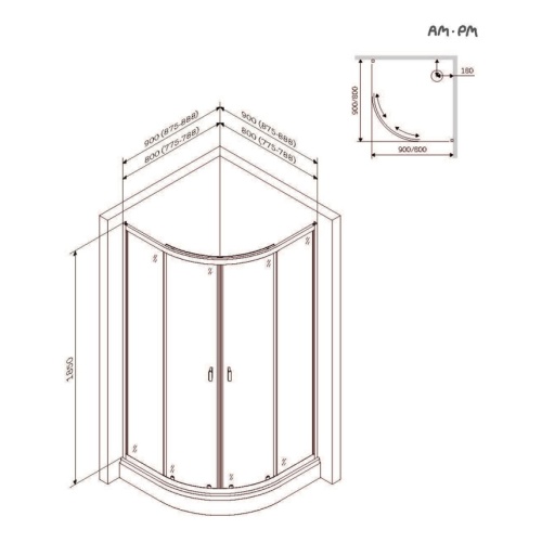 Душевое ограждение c поддоном AM.PM W88E-205-080BT, 80x80
