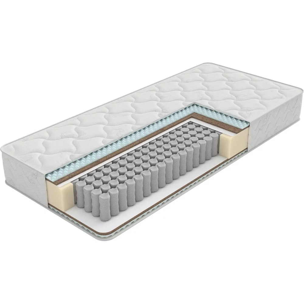 Средний, симметричный матрас, двухспальный / односпальный, ширина 120 / 160 см, длина 190 / 200 см, высота 23 см, базовый блок: независимые пружины, настилочные материалы: пенополиуретан (поролон): 40 мм. Кокосовая койра: 20 мм. Спанбонд., тип ткани чехла: трикотаж. Стёганый чехол. Материалы подстёжки: синтепон.
