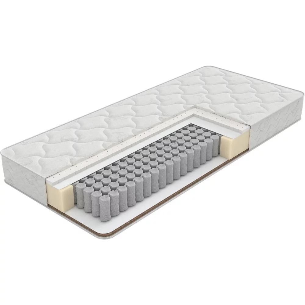 Жесткий / мягкий, двухспальный / односпальный, ширина 120 ... 180 см, длина 190 / 200 см, высота 20 см, базовый блок: независимые пружины, настилочные материалы: латекс: 20 мм. Кокосовая койра: 10 мм. Спанбонд., тип ткани чехла: трикотаж. Стёганый чехол. Материалы подстёжки: синтепон.