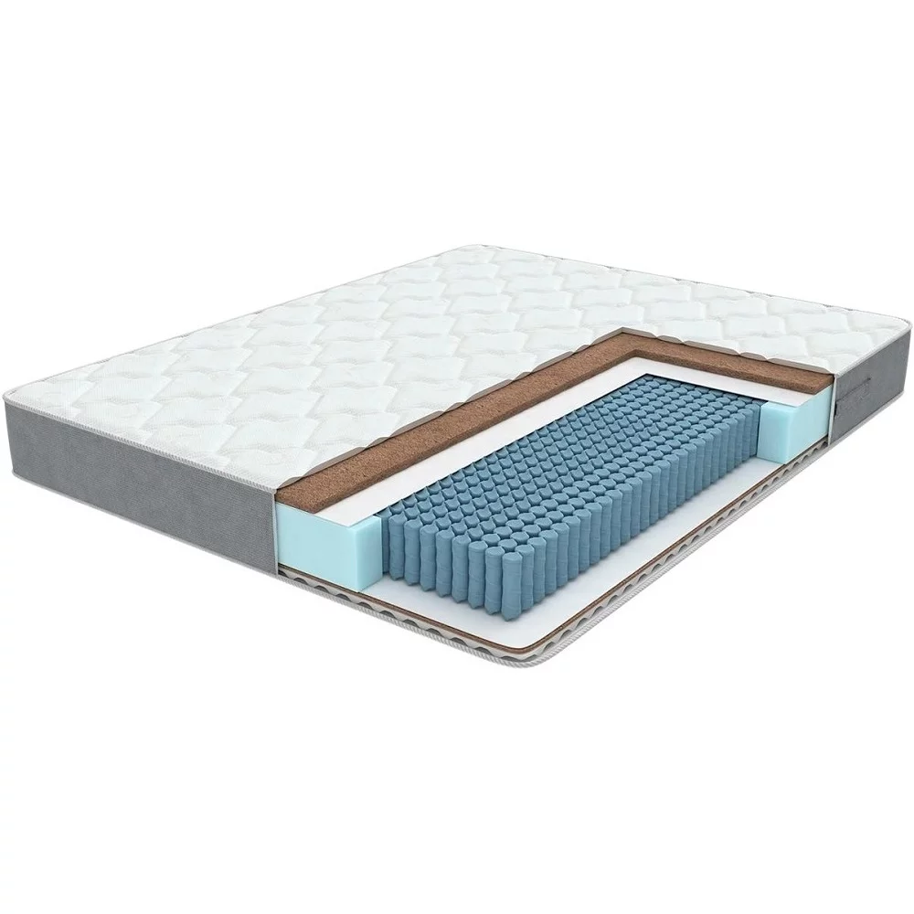Жесткий / средний, двухспальный / односпальный, ширина 80 ... 200 см, длина 190 / 200 см, высота 23 см, базовый блок: независимые пружины, настилочные материалы: пенополиуретан (поролон). Кокосовая койра: 25 мм. Спанбонд., тип ткани чехла: трикотаж. Стёганый чехол. Материалы подстёжки: пенополиуретан.