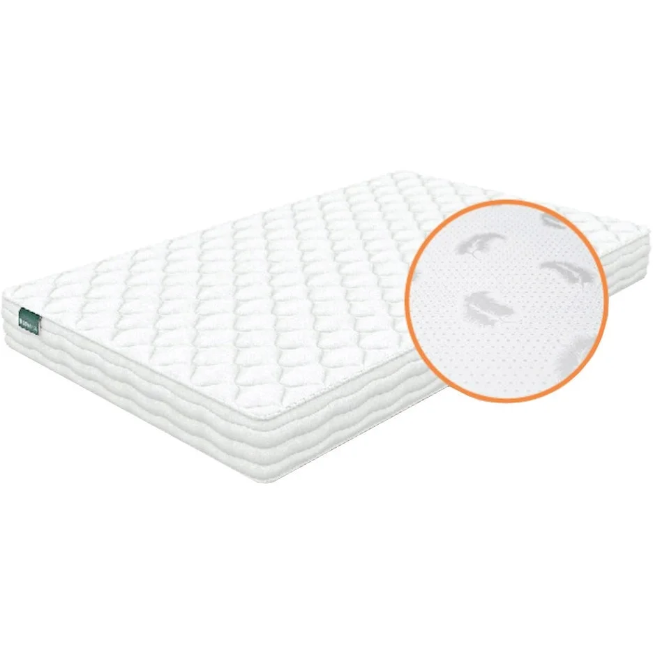 Среднежесткий, симметричный матрас, двухспальный / односпальный, ширина 80 ... 180 см, длина 190 / 200 см, высота 19 см, базовый блок: независимые пружины, настилочные материалы: кокосовая койра: 10 мм., тип ткани чехла: трикот. Стёганый чехол. Материалы подстёжки: холлкон.
