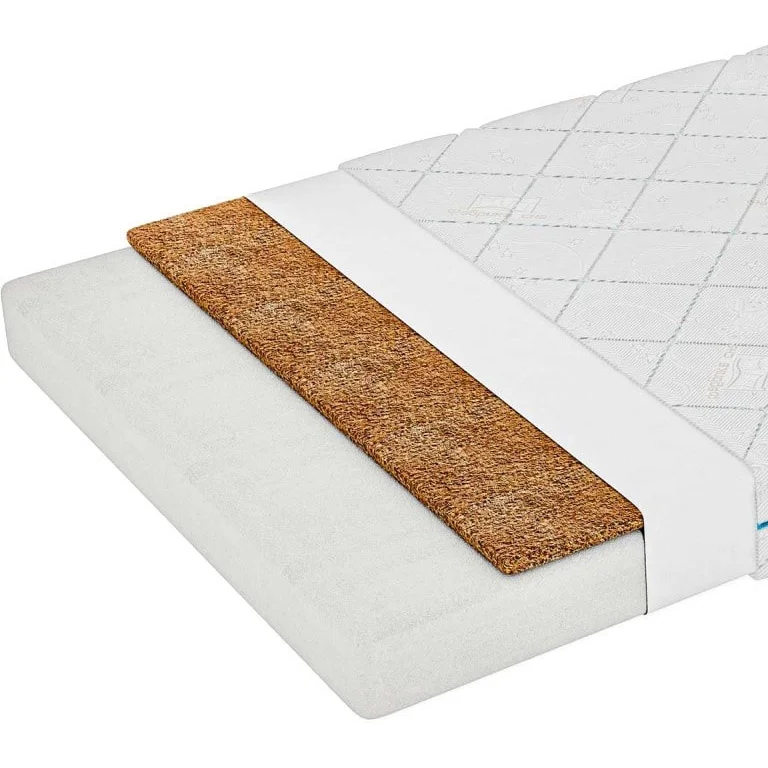 Среднежесткий, двухспальный / односпальный, ширина 70 ... 200 см, длина 180 ... 200 см, высота 17 см, базовый блок: беспружинный, настилочные материалы: латекс: 90 мм (3x30). Кокосовая койра: 60 мм (30+30)., Съёмный чехол.Тип ткани чехла: трикотаж. Процент хлопка в ткани чехла: 40 %. Стёганый чехол.